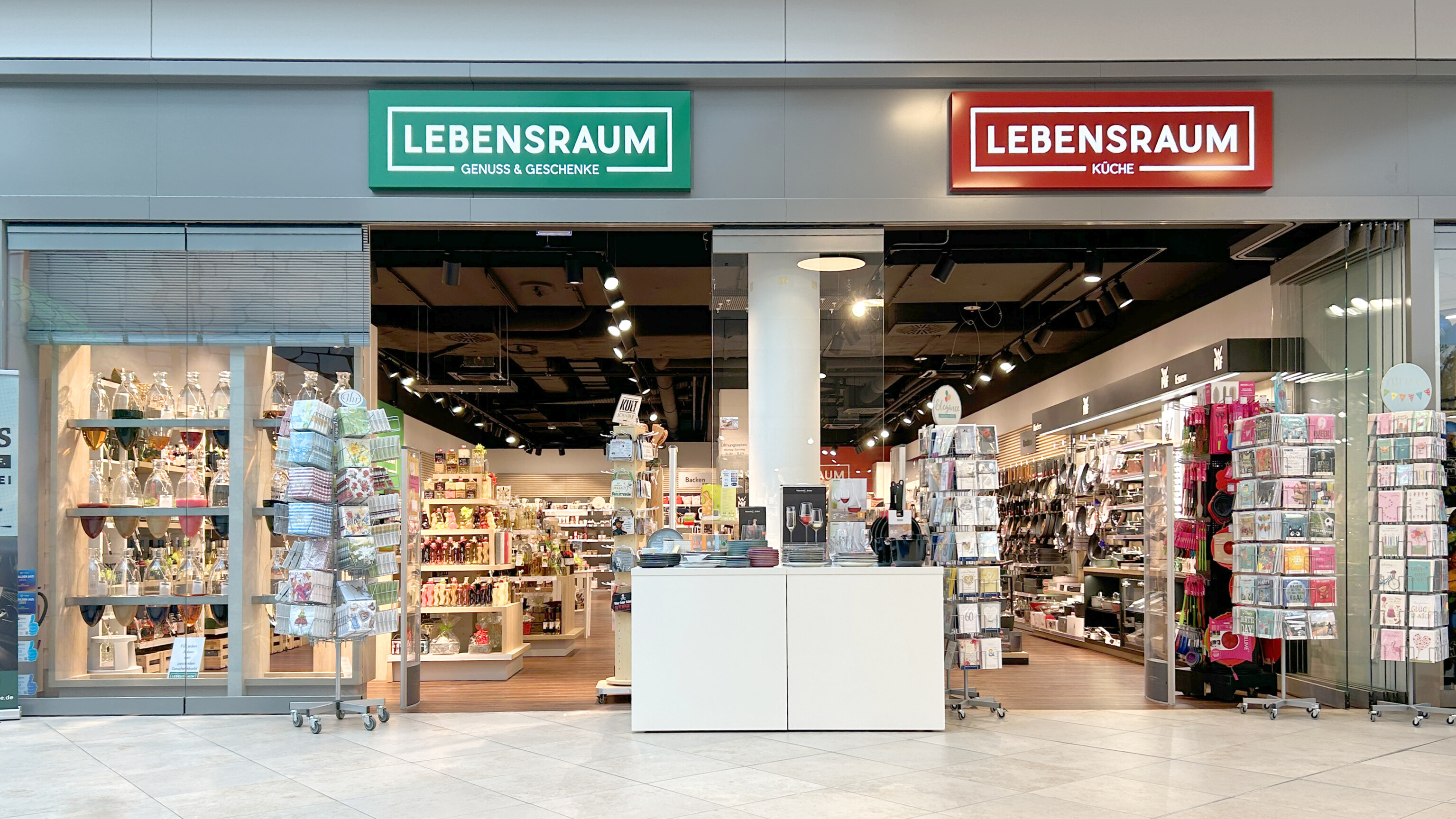 Den Lebensraum Taschen & Koffer | Wohnen finden Sie jetzt gegenüber vom MediaMarkt im früheren Lebensraum Küche. Der Lebensraum Küche ist nun mit im Genuss & Geschenke integriert.
